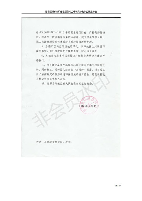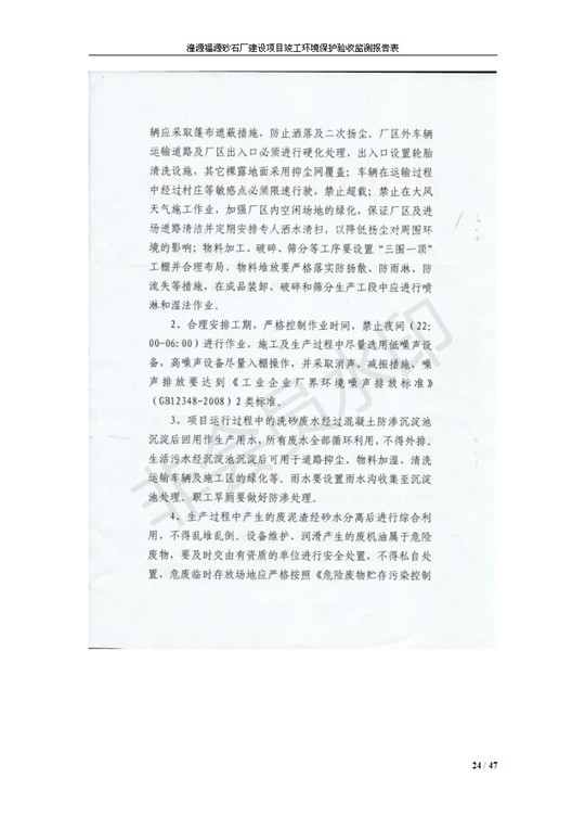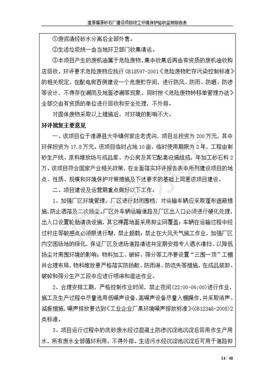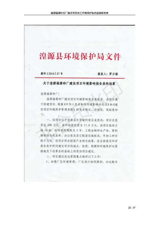 根據(jù)中華人民共和國國務(wù)院令第253號《建設(shè)項目環(huán)境保護(hù)管理條例》(中華人民共和國國務(wù)院令第682號《國務(wù)院關(guān)于修改〈建設(shè)項目環(huán)境保護(hù)管理條例〉的決定》和《建設(shè)項目竣工環(huán)境保護(hù)驗收暫行辦法》,嚴(yán)格依照有關(guān)法律法規(guī),建設(shè)項目環(huán)境保護(hù)設(shè)施驗收技術(shù)規(guī)范,本項目環(huán)評報告表和環(huán)保審批部門審批意見以及企業(yè)自行驗收相關(guān)要求等對本項目進(jìn)行驗收,本項目符合環(huán)保驗收條件,可以通過環(huán)保驗收。 湟源福砂廠建設(shè)項目竣工環(huán)境保護(hù)驗收意見