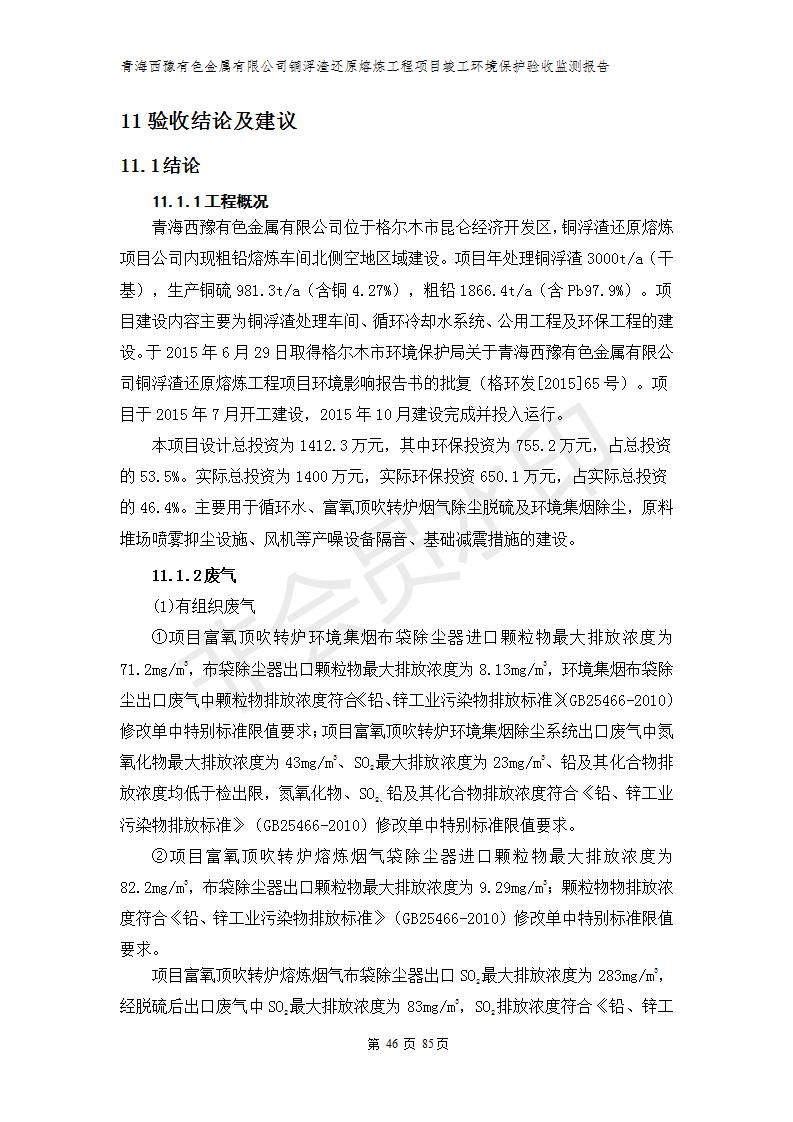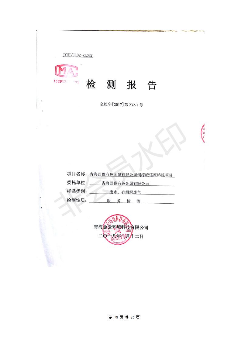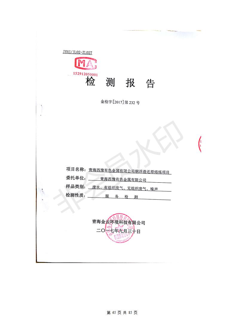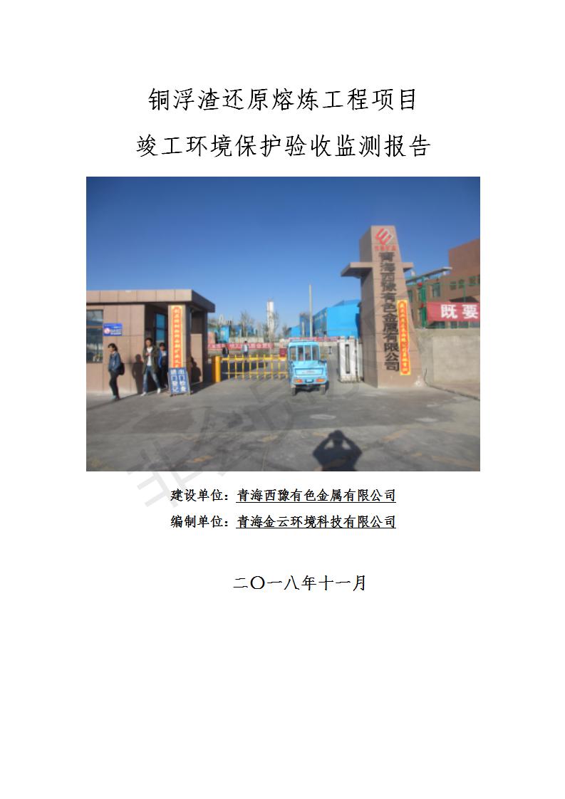 青海西豫有色金屬有限公司銅浮渣還原熔煉工程項目竣工環(huán)境保護(hù)驗收監(jiān)測報告公示發(fā)布日期:(2018-11-23) 點擊次數(shù):2735 |