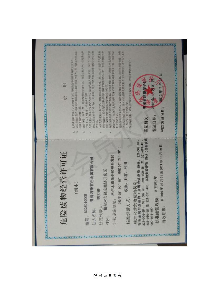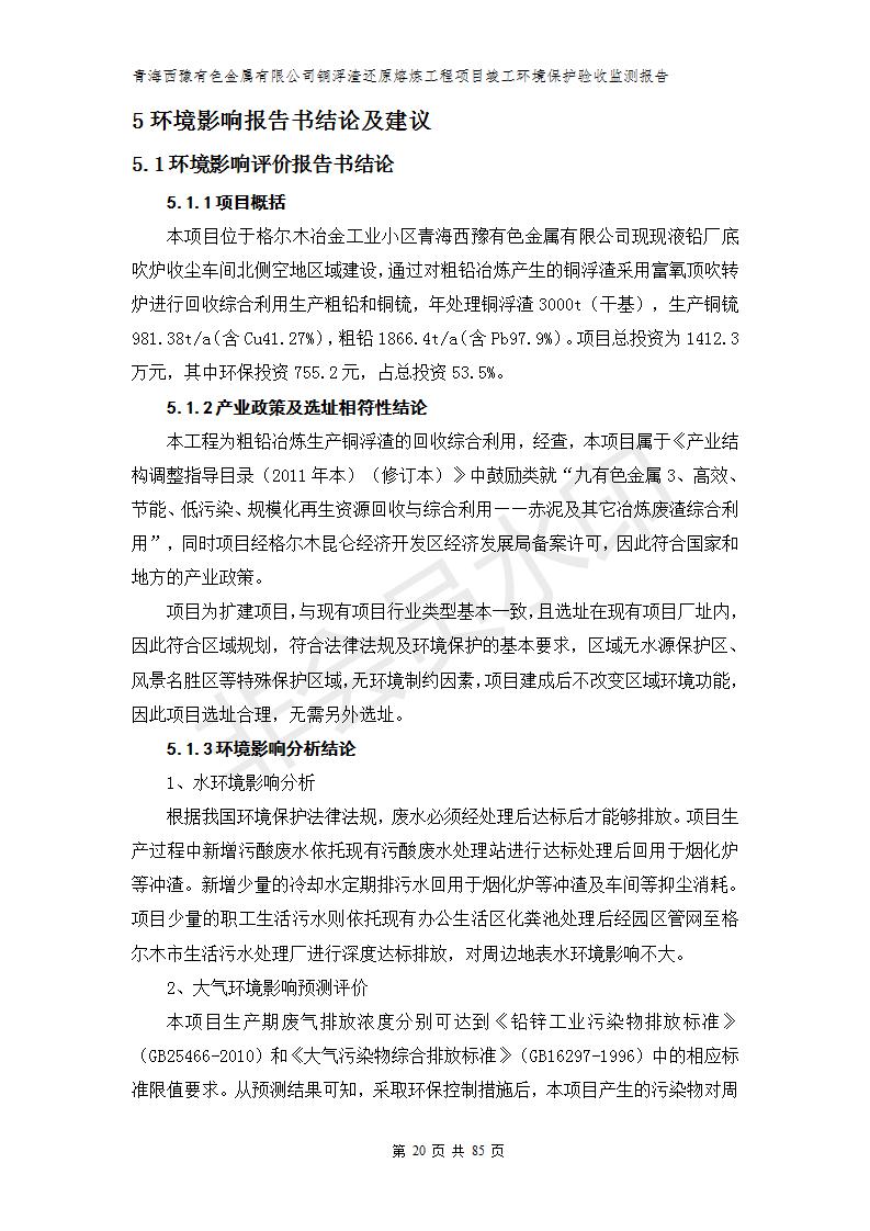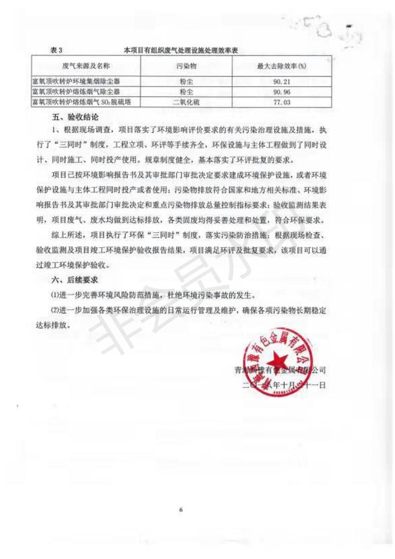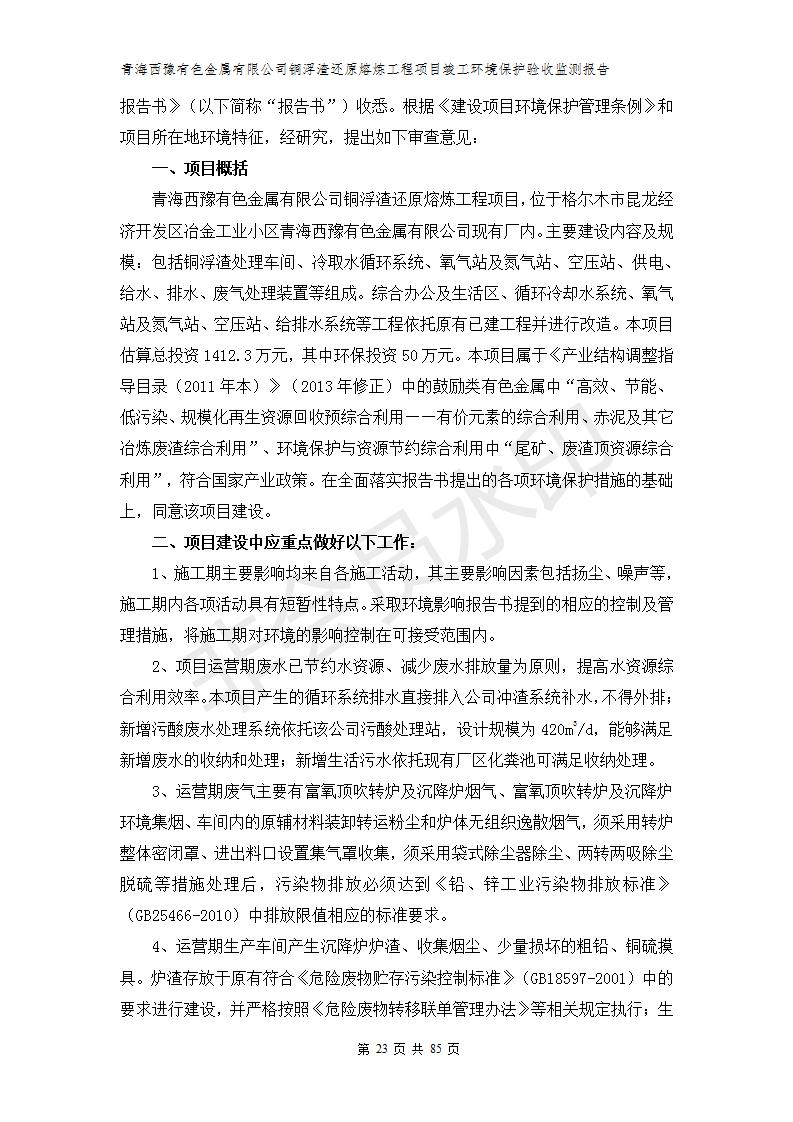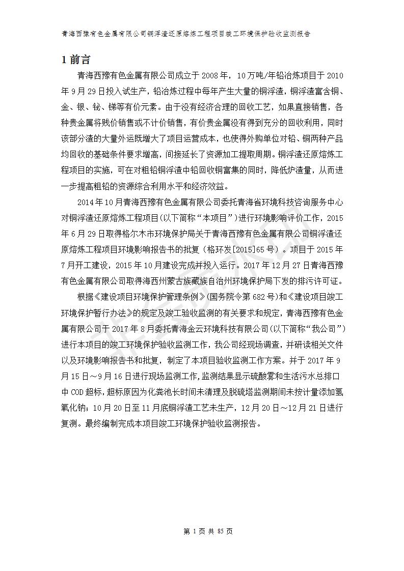 青海西豫有色金屬有限公司銅浮渣還原熔煉工程項目竣工環(huán)境保護(hù)驗收監(jiān)測報告公示發(fā)布日期:(2018-11-23) 點擊次數(shù):2735 |