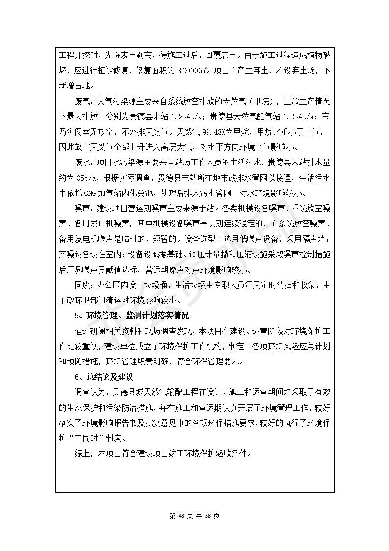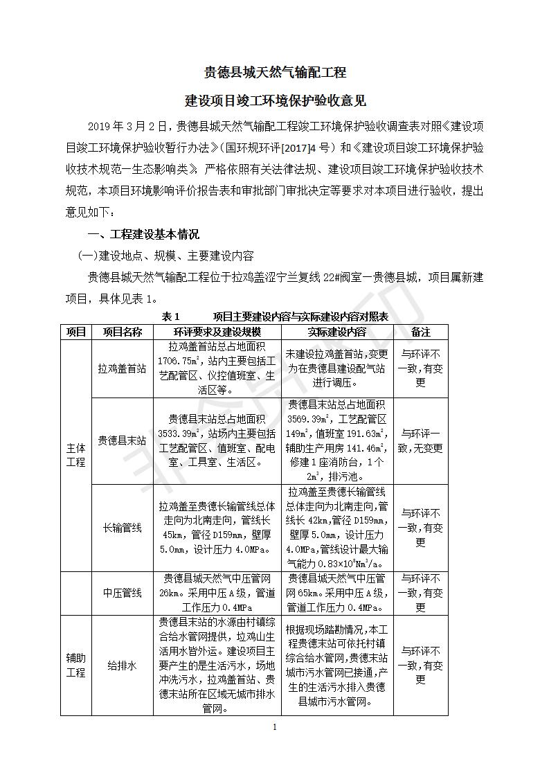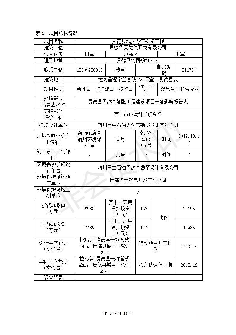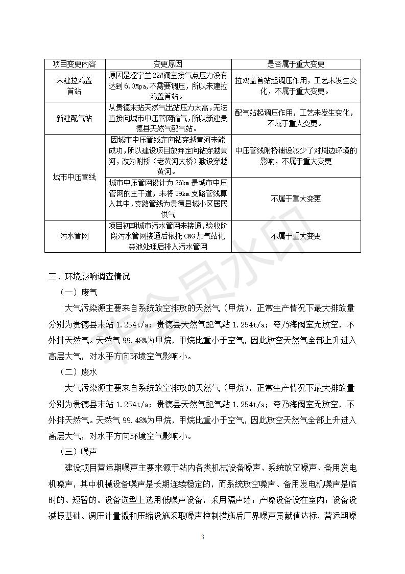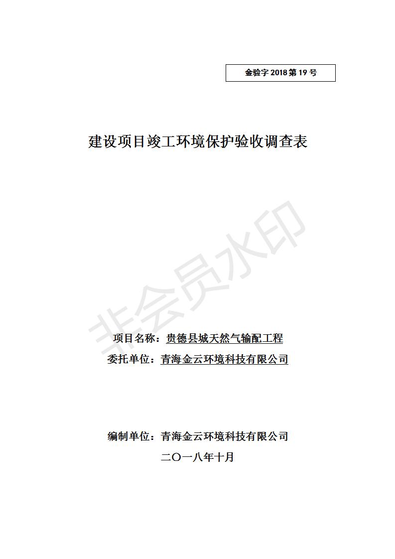 貴德縣城輸配管線工程竣工環(huán)境保護驗收調(diào)查表公示