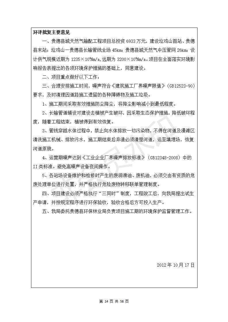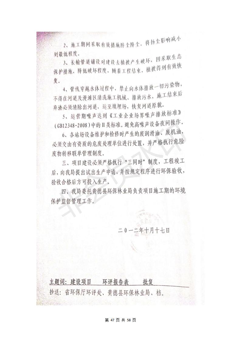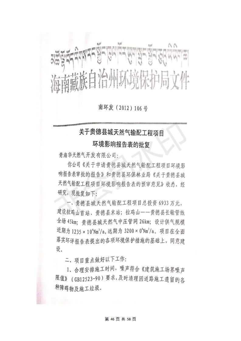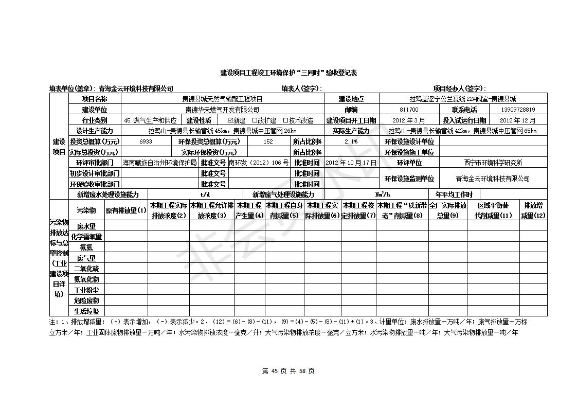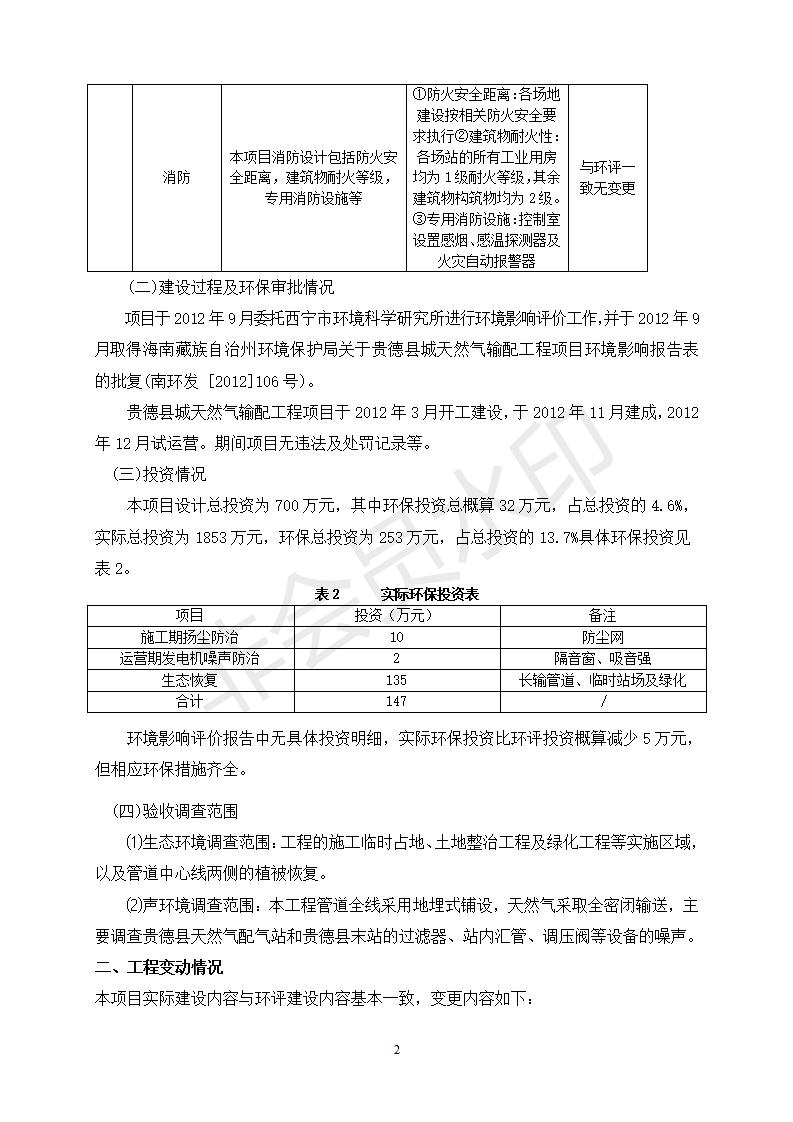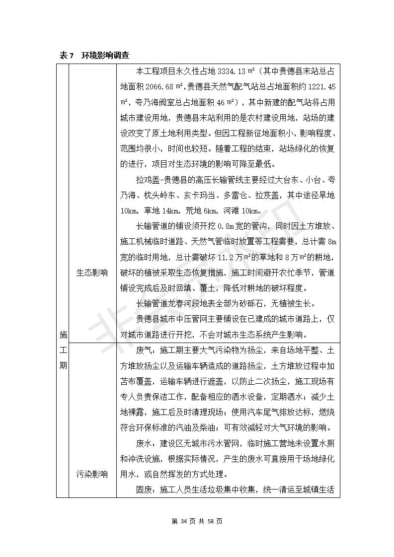 貴德縣城輸配管線工程竣工環(huán)境保護驗收調(diào)查表公示