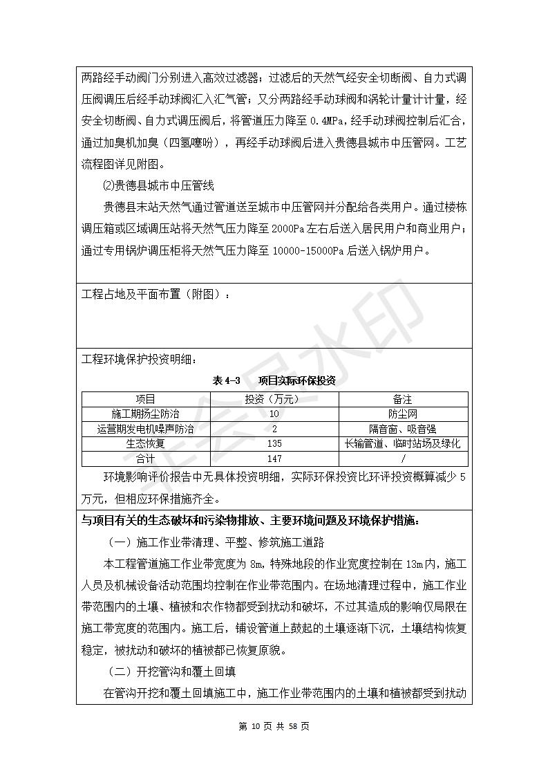 根據(jù)中華人民共和國務院令第682號《國務院關于修改〈建設項目環(huán)境保護管理條例〉的決定》和《建設項目竣工環(huán)境保護驗收暫行辦法》(國務院令682號),貴德縣城輸配管線工程竣工環(huán)境保護驗收內(nèi)容(包括竣工環(huán)境保護驗收調(diào)查表和驗收意見)公示如下。 一、項目名稱:貴德縣城天然氣輸配工程 二、地點:拉雞蓋澀寧蘭復線22#閥室-貴德縣城 三、建設單位:貴德華天燃氣開發(fā)有限公司 四、建設內(nèi)容:貴德縣末站、貴德縣配氣站、貴德縣中壓管網(wǎng)、拉雞蓋22#閥室-貴德縣城長輸管線 五、公示時間:二〇一九年三月十一日至二〇一九年四月八日 六、聯(lián)系人:張工 公示期間,對上述公示內(nèi)容如有異議,請以書面形式反饋,個人須署真實姓名,單位須加蓋公章。