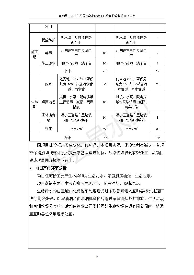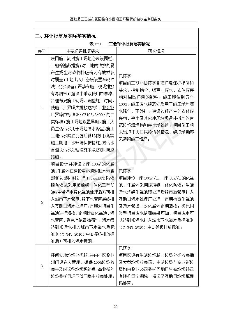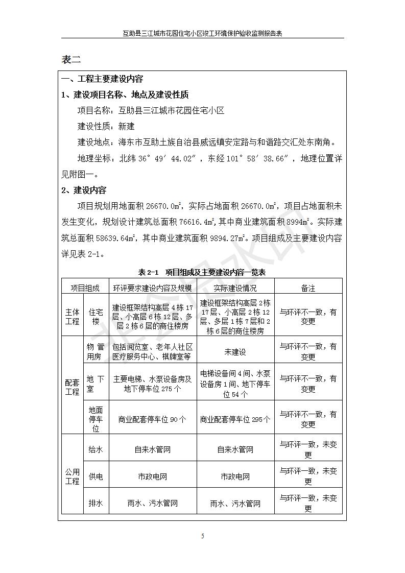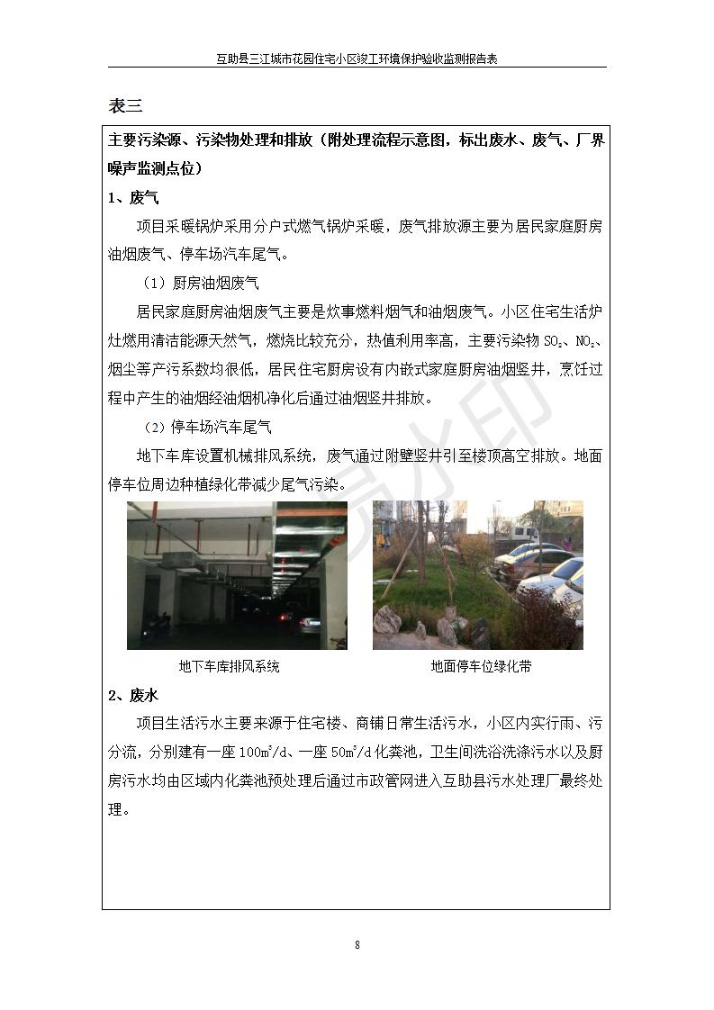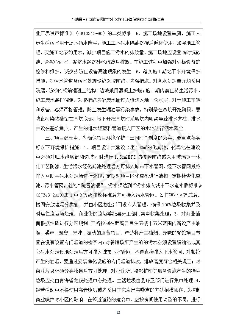 根據(jù)中華人民共和國國務院令第682號《國務院關于修改〈建設項目環(huán)境保護管理條例〉的決定》和《建設項目竣工環(huán)境保護驗收暫行辦法》(國務院令682號),互助縣三江城市花園住宅小區(qū)(包括竣工環(huán)境保護驗收監(jiān)測報告表和驗收意見)公示如下。 一、項目名稱: 互助縣三江城市花園住宅小區(qū)竣工環(huán)境保護驗收監(jiān)測報告表 二、地點:青海省海東市互助土族自治縣威遠鎮(zhèn)安定路與和諧路交匯處東南角 三、建設單位:青海三兄房地產(chǎn)開發(fā)有限公司 四、建設內(nèi)容:項目規(guī)劃用地面積26670.0m2,實際占地面積26670.0m2,項目占地面積未發(fā)生變化,規(guī)劃設計建筑總面積76616.4m2,其中商業(yè)建筑面積8994m2。實際建筑總面積58639.64m2,其中商業(yè)建筑面積9894.27m2。 五、聯(lián)系人:張工 六、聯(lián)系電 話:0971-6515411 七、公示時間:二〇一九年六月五日至二〇一九年七月三日 公示期間,對上述公示內(nèi)容如有異議,請以書面形式反饋,個人須署真實姓名,單位須加蓋公章。