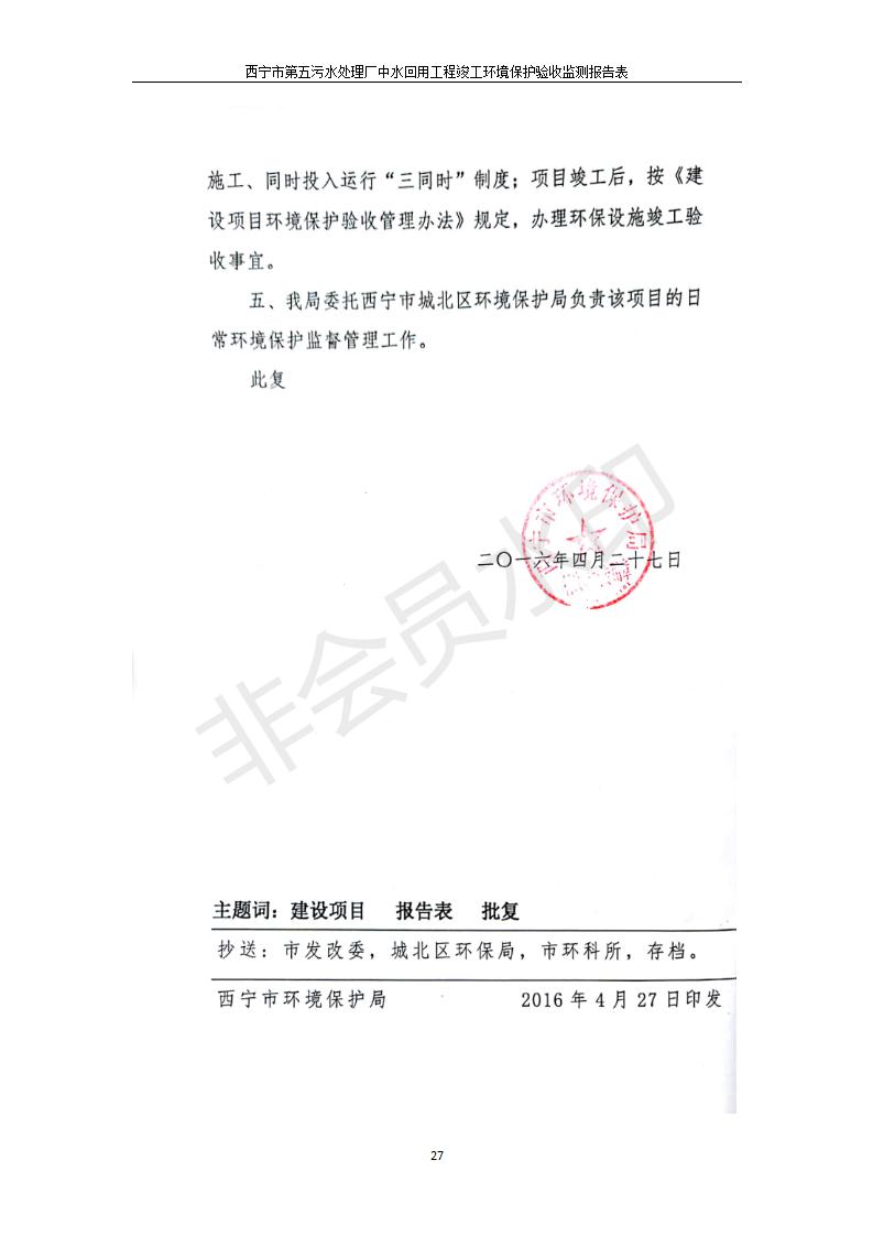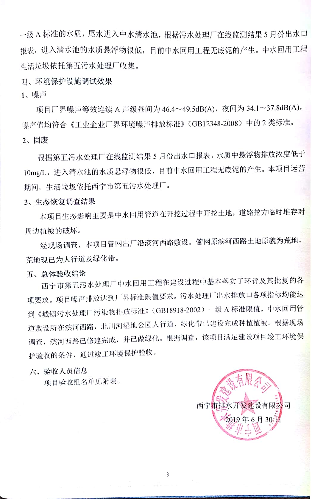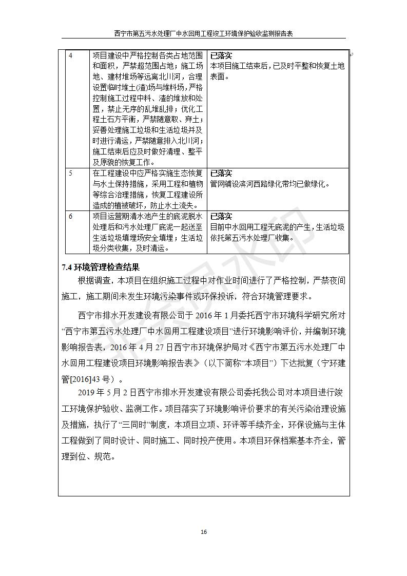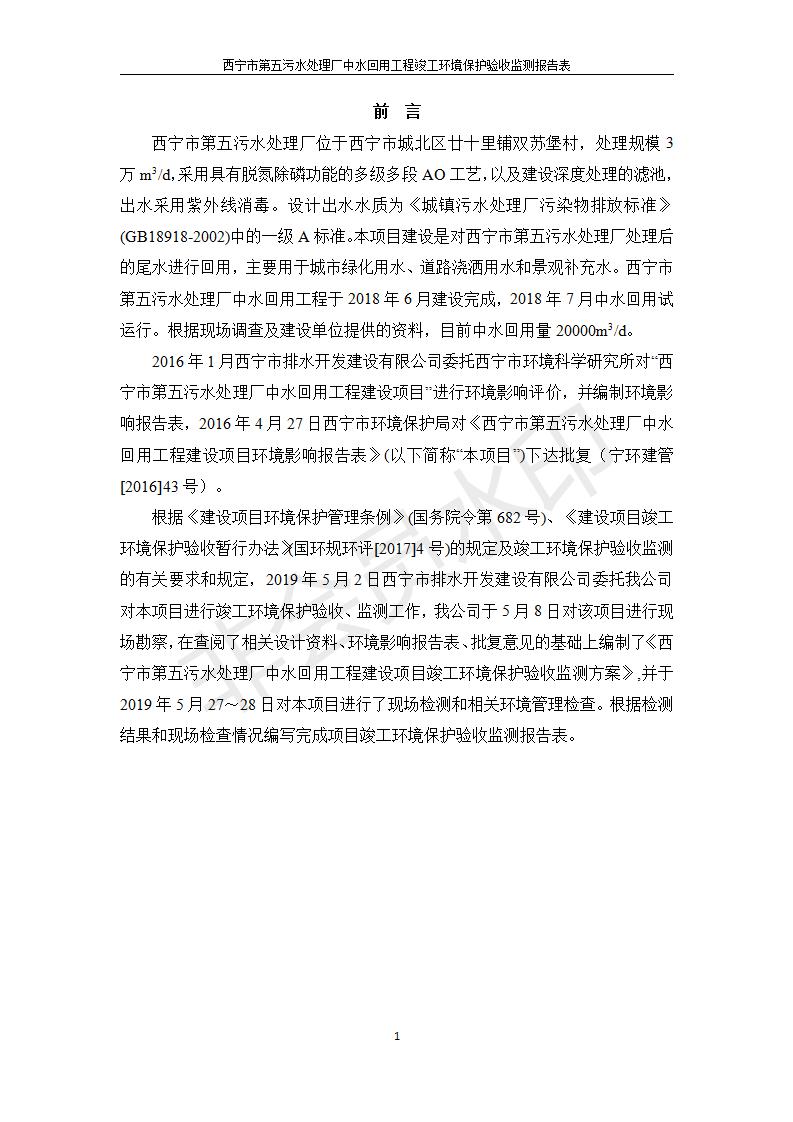 西寧市第五污水處理廠中水回用工程建設項目竣工環(huán)境保護驗收監(jiān)測報告表公示發(fā)布日期:(2019-7-10) 點擊次數(shù):2474 |