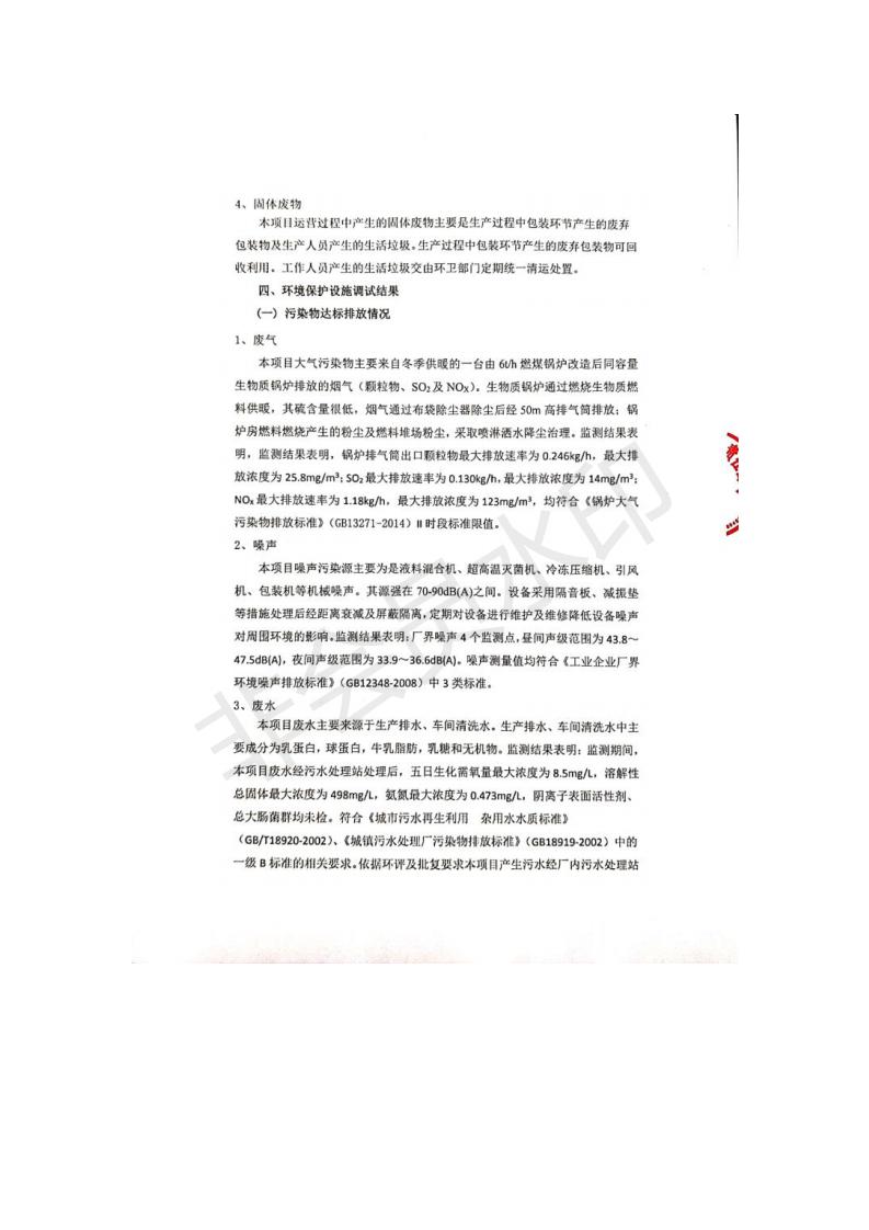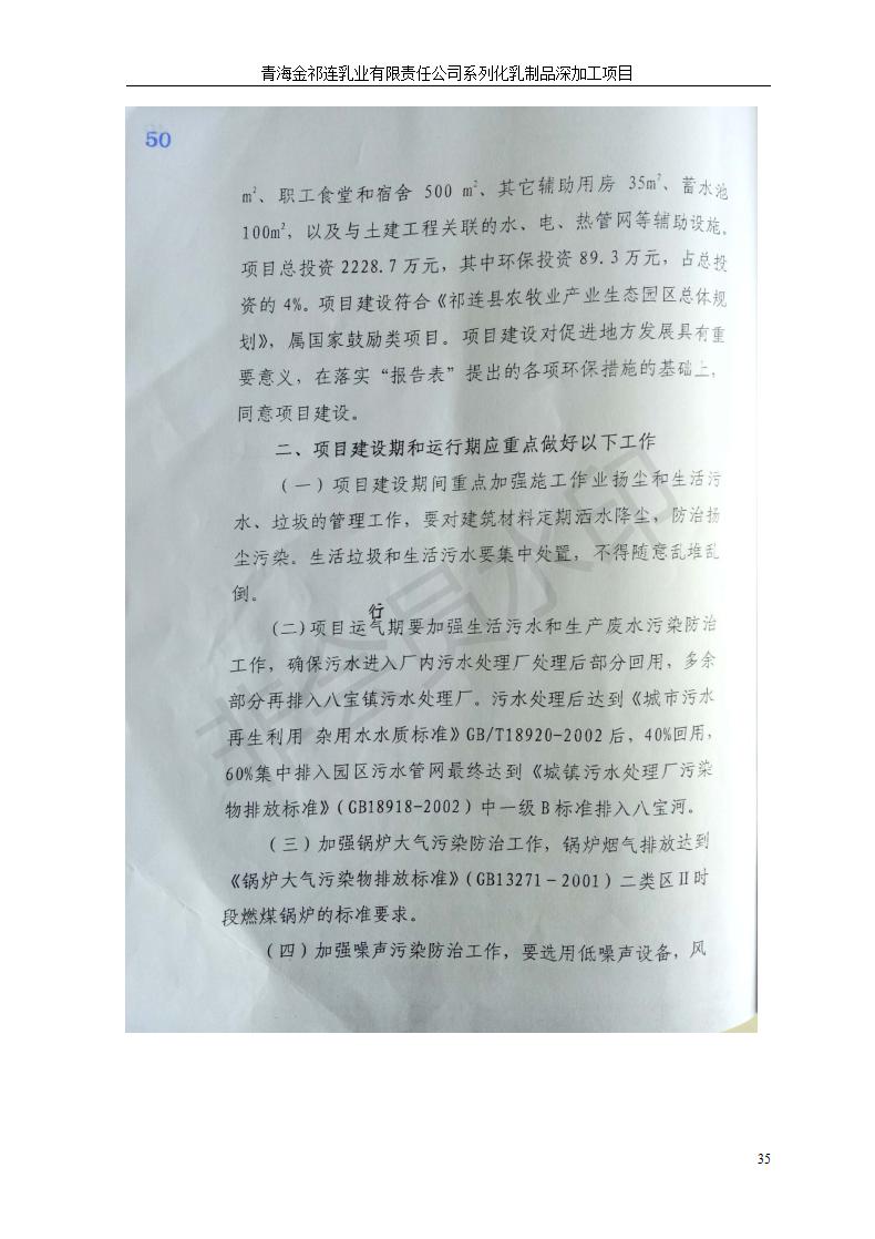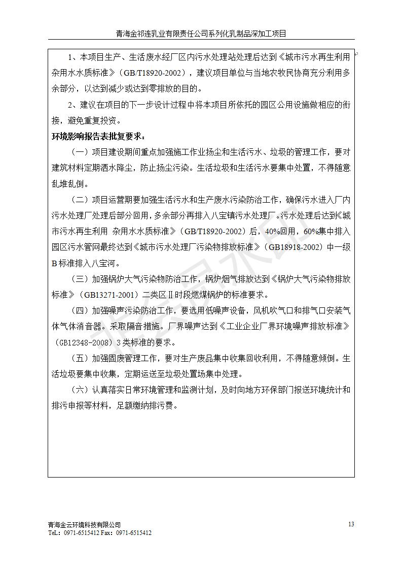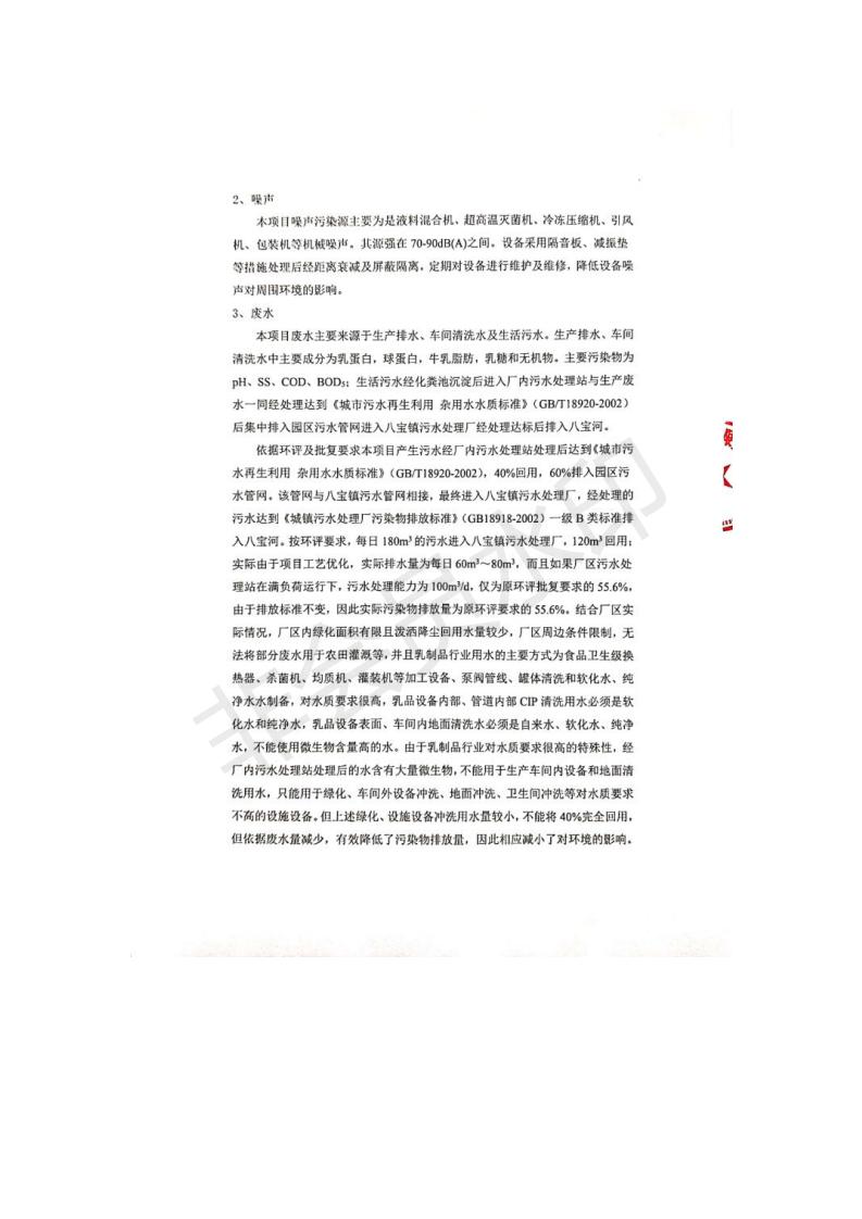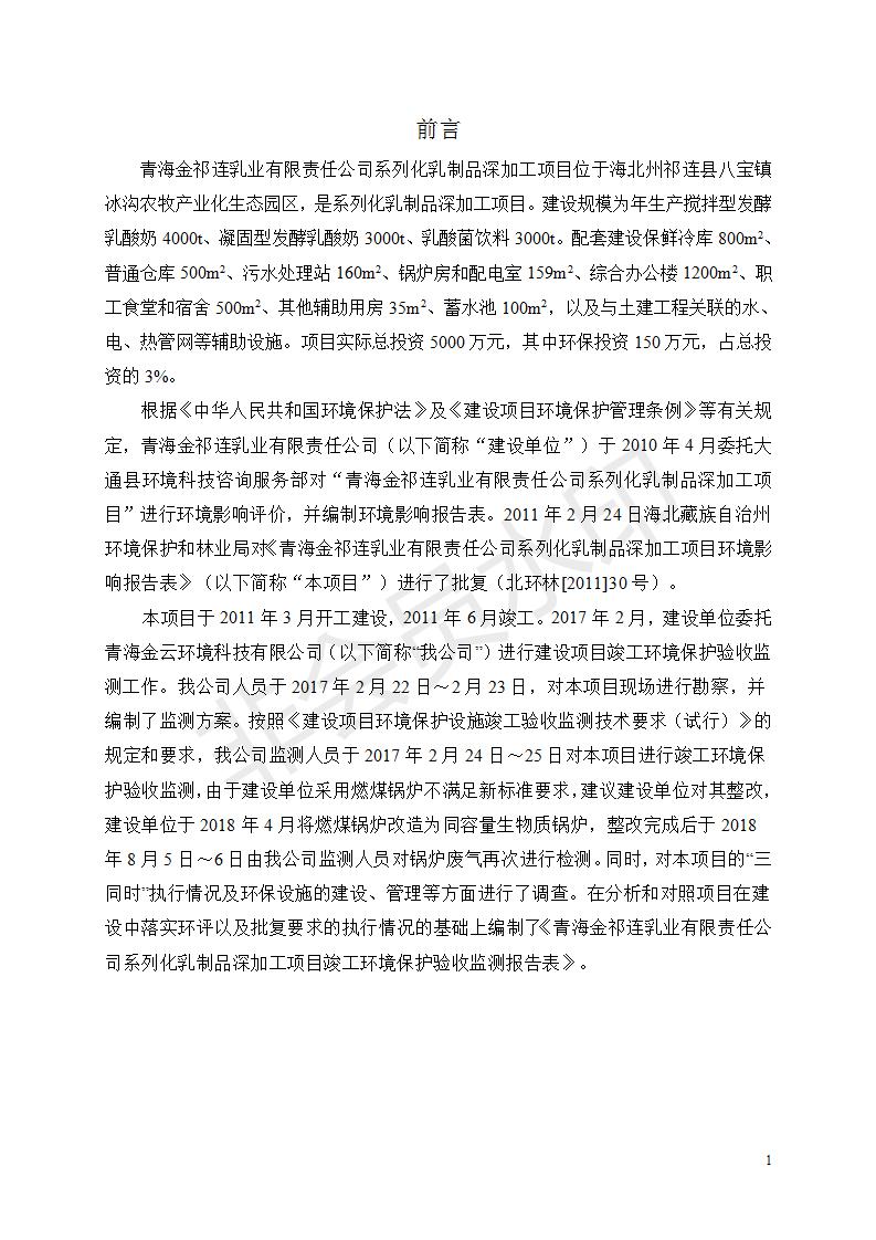 根據(jù)中華人民共和國國務院令第682號《國務院關于修改〈建設項目環(huán)境保護管理條例〉的決定》和《建設項目竣工環(huán)境保護驗收暫行辦法》(國務院令682號),青海金祁連乳業(yè)有限責任公司系列化乳制品深加工項目(包括竣工環(huán)境保護驗收監(jiān)測報告表和驗收意見)公示如下。 一、項目名稱:青海金祁連乳業(yè)有限責任公司系列化乳制品深加工項目 二、地點:海北藏族自治州祁連縣冰溝農(nóng)牧產(chǎn)業(yè)化生態(tài)園區(qū) 三、建設單位:青海金祁連乳業(yè)有限責任公司 四、建設內(nèi)容:本項目新征工業(yè)用地40畝,新建生產(chǎn)車間2200 m2、采用多聯(lián)跨鋼結構廠房,跨度為24米,長度為80米,柱間距為6米,標高為4.8米。廠房內(nèi)部根據(jù)產(chǎn)品生產(chǎn)工藝及工序要求分為不同的工作區(qū)域和車間辦公室。建設有保鮮冷庫800 m2、普通倉庫500m2、污水處理站房160 m2、鍋爐房和配電室159 m2、綜合辦公樓1200 m2、職工食堂和宿舍500 m2、其他輔助用房35 m2、蓄水池100 m2以及與土建工程相關聯(lián)的水、電、熱官網(wǎng)等輔助設施。 五、聯(lián)系人:張工 六、聯(lián)系電 話:0971-6515411 七、公示時間:二〇一九年七月十日至二〇一九年八月六日 公示期間,對上述公示內(nèi)容如有異議,請以書面形式反饋,個人須署真實姓名,單位須加蓋公章。
