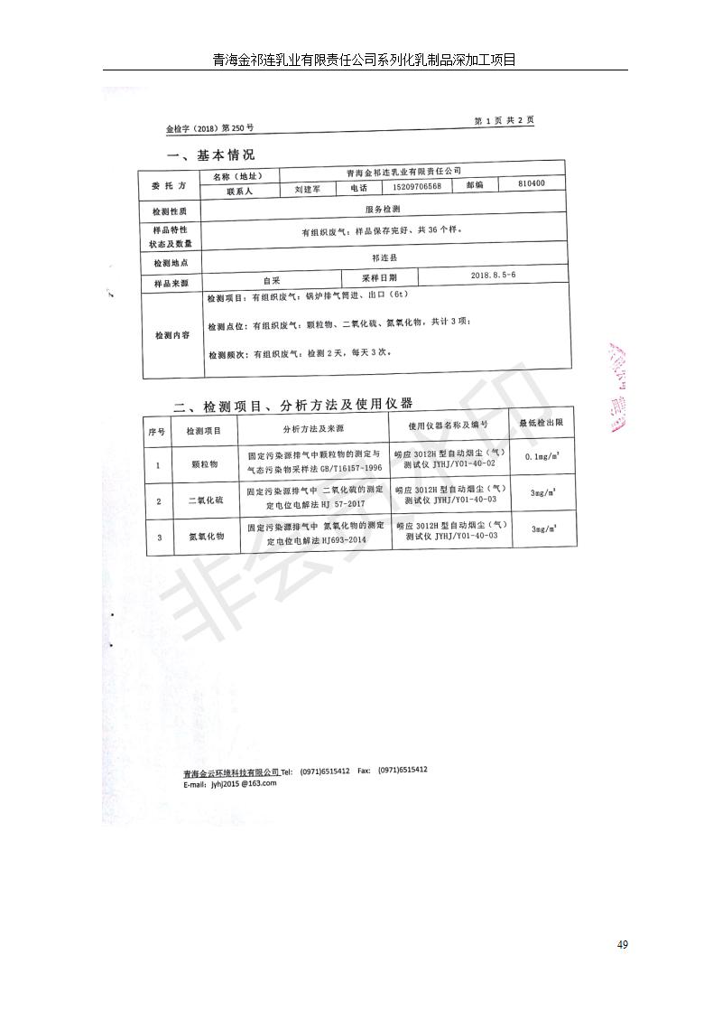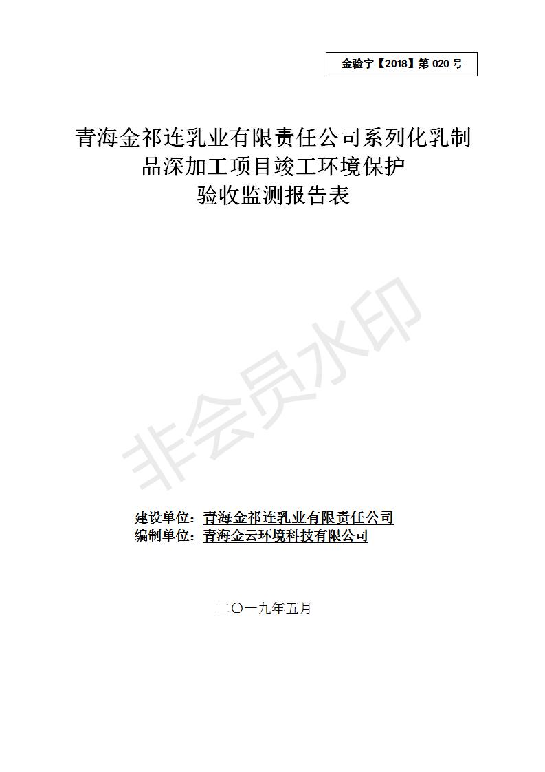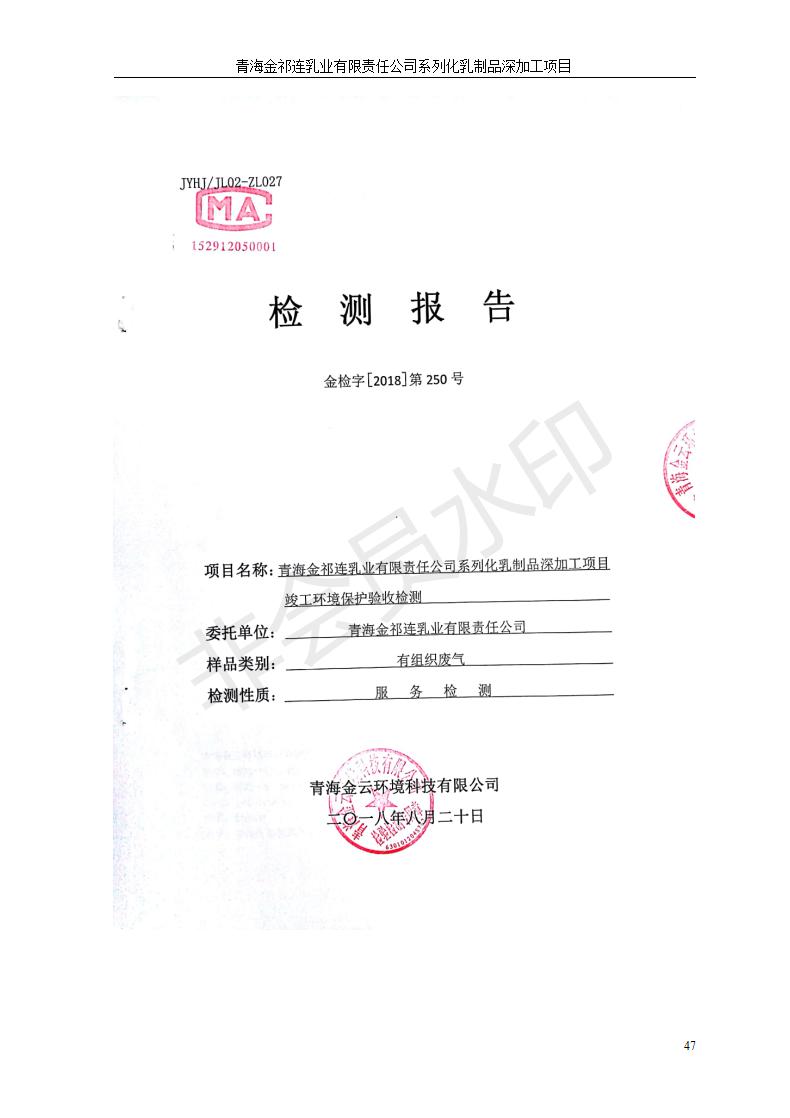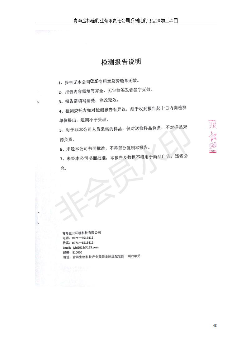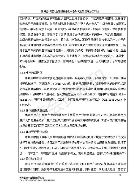 青海金祁連乳業(yè)有限責任公司系列化乳制品深加工項目竣工環(huán)境保護驗收監(jiān)測報告表公示發(fā)布日期:(2019-7-10) 點擊次數(shù):2350 |