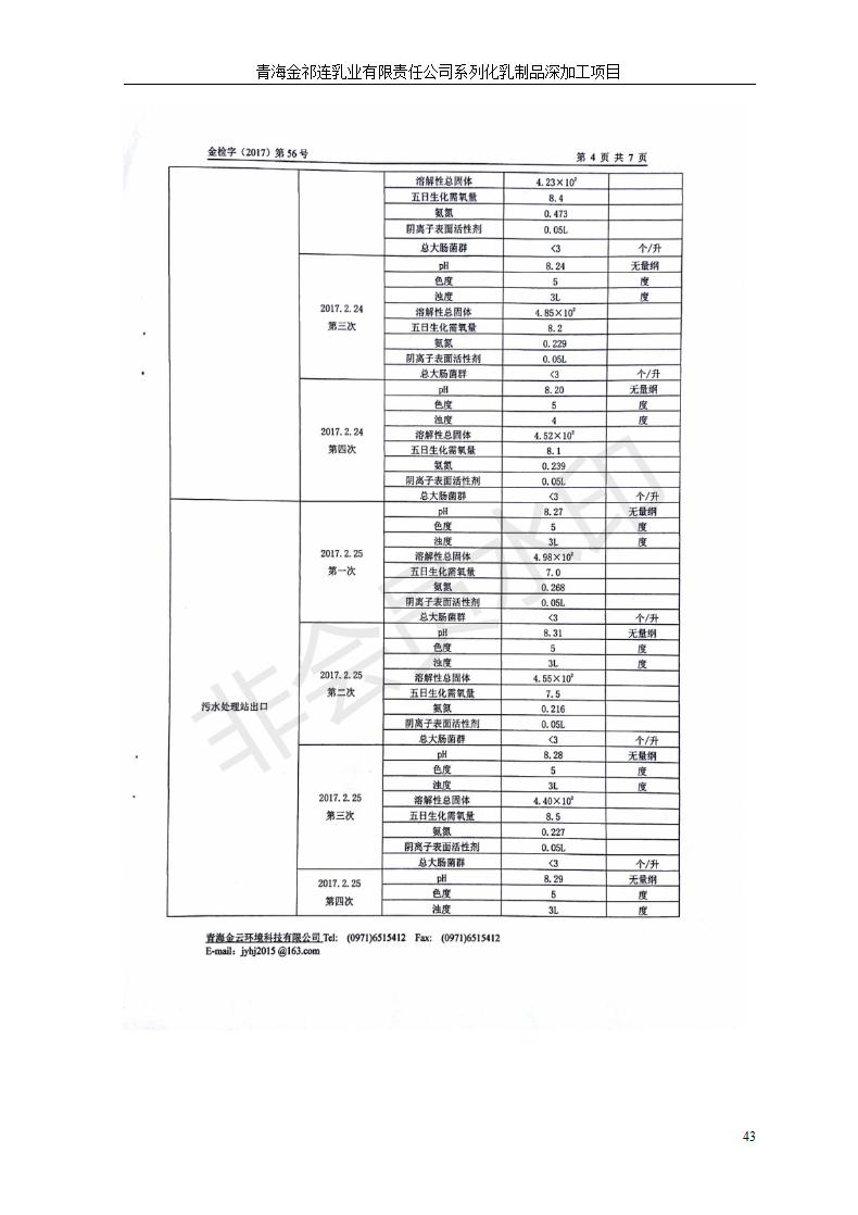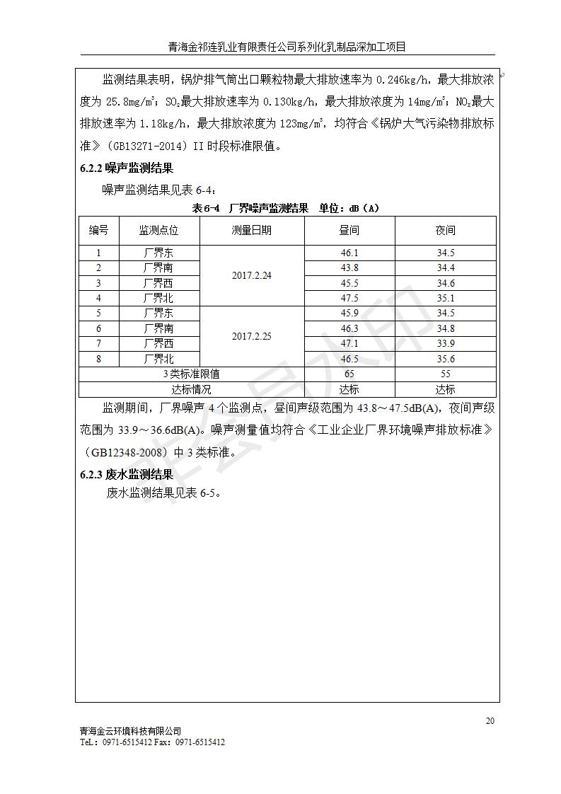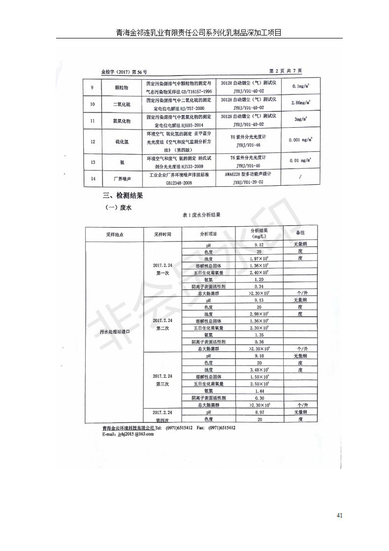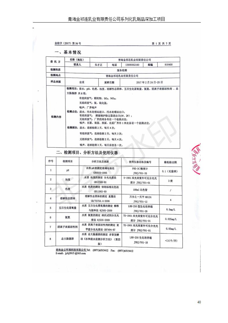 青海金祁連乳業(yè)有限責任公司系列化乳制品深加工項目竣工環(huán)境保護驗收監(jiān)測報告表公示發(fā)布日期:(2019-7-10) 點擊次數(shù):2350 |
