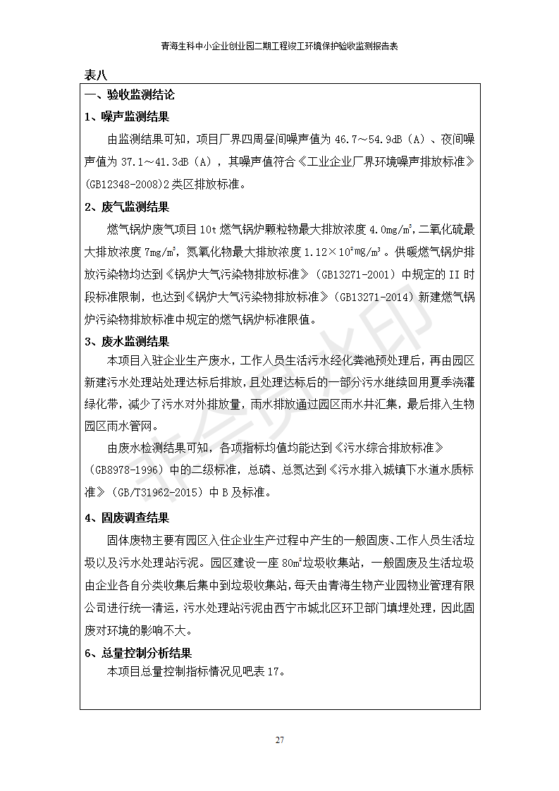 青海生科中小企業(yè)創(chuàng)業(yè)園二期工程建設(shè)項(xiàng)目竣工環(huán)境保護(hù)驗(yàn)收檢測(cè)報(bào)告表公示發(fā)布日期:(2020-2-1) 點(diǎn)擊次數(shù):2450 |