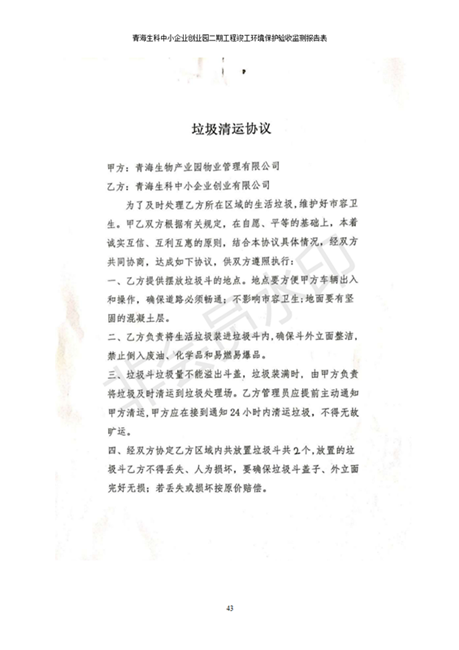 據(jù)中華人民共和國國務(wù)院令第682號(hào)《國務(wù)院關(guān)于修改〈建設(shè)項(xiàng)目環(huán)境保護(hù)管理?xiàng)l例〉的決定》和《建設(shè)項(xiàng)目竣工環(huán)境保護(hù)驗(yàn)收暫行辦法》(國務(wù)院令682號(hào)),青海生科中小企業(yè)創(chuàng)業(yè)園二期工程建設(shè)項(xiàng)目(包括竣工環(huán)境保護(hù)驗(yàn)收監(jiān)測(cè)報(bào)告表和驗(yàn)收意見)公示如下。 一、項(xiàng)目名稱:青海生科中小企業(yè)創(chuàng)業(yè)園二期工程建設(shè)項(xiàng)目 二、地點(diǎn):西寧市生物園區(qū)經(jīng)四路26號(hào) 五、聯(lián)系人:張憲周 六、聯(lián)系電話:13997290897 七、公示時(shí)間:二〇二〇年二月三日至二〇二〇年二月二十八日 公示期間,對(duì)上述公示內(nèi)容如有異議,請(qǐng)以書面形式反饋,個(gè)人須署真實(shí)姓名,單位須加蓋公章。