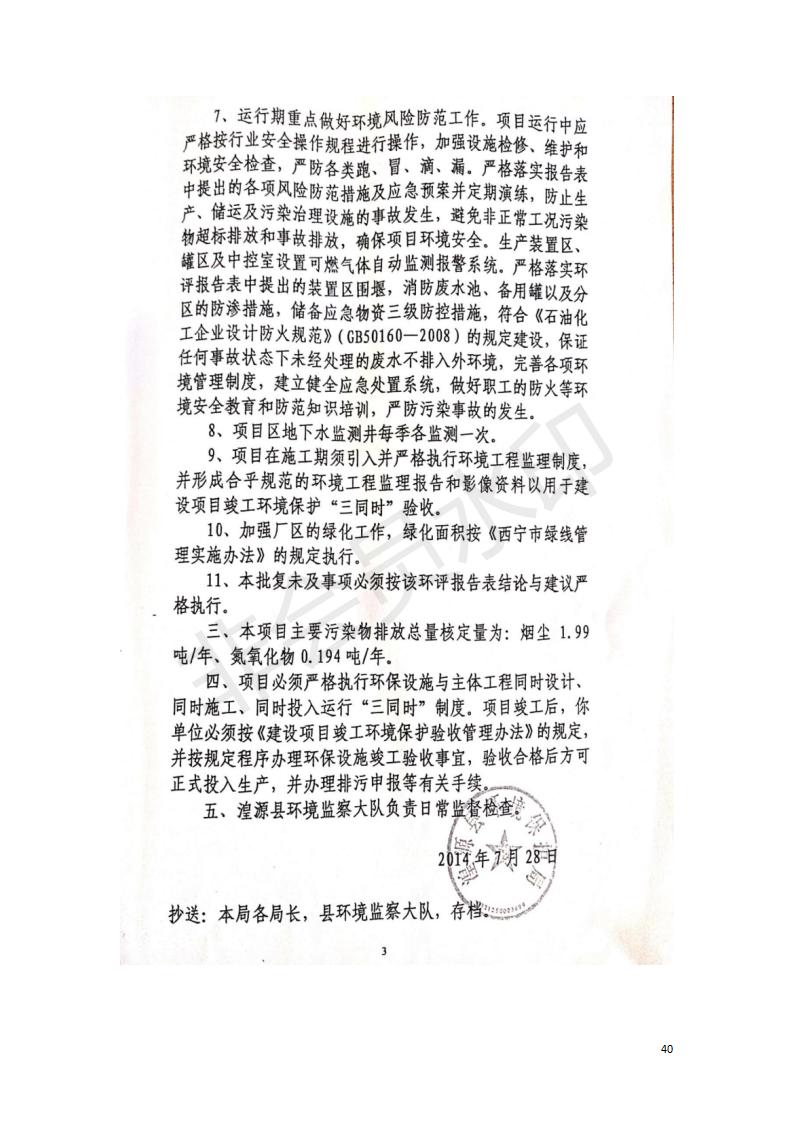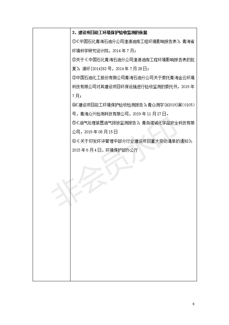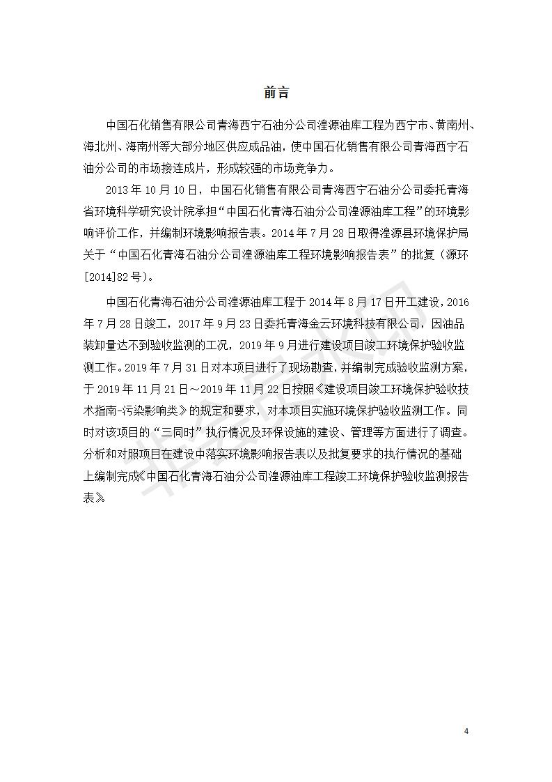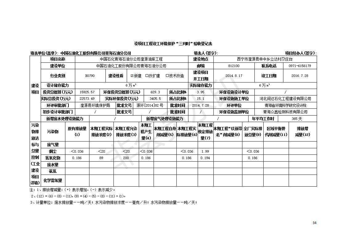 據(jù)中華人民共和國(guó)國(guó)務(wù)院令第682號(hào)《國(guó)務(wù)院關(guān)于修改〈建設(shè)項(xiàng)目環(huán)境保護(hù)管理?xiàng)l例〉的決定》和《建設(shè)項(xiàng)目竣工環(huán)境保護(hù)驗(yàn)收暫行辦法》(國(guó)務(wù)院令682號(hào)),中國(guó)石化青海石油分公司湟源油庫(kù)工程建設(shè)項(xiàng)目(包括竣工環(huán)境保護(hù)驗(yàn)收監(jiān)測(cè)報(bào)告表和驗(yàn)收意見(jiàn))公示如下。 一、項(xiàng)目名稱:中國(guó)石化青海石油分公司湟源油庫(kù)工程建設(shè)項(xiàng)目 二、地點(diǎn):西寧市湟源縣申中鄉(xiāng)立達(dá)村尕莊臺(tái) 三、建設(shè)單位:中國(guó)石化銷售股份有限公司青海石油分公司 四、建設(shè)內(nèi)容:油品儲(chǔ)量6萬(wàn)m3、其他配套設(shè)施。五、聯(lián)系人:董恒棟 六、聯(lián)系電話:18697130811 七、公示時(shí)間:二〇二〇年三月十三日至二〇二〇年四月十日 公示期間,對(duì)上述公示內(nèi)容如有異議,請(qǐng)以書面形式反饋,個(gè)人須署真實(shí)姓名,單位須加蓋公章。