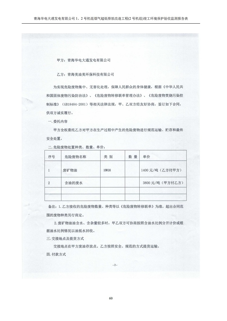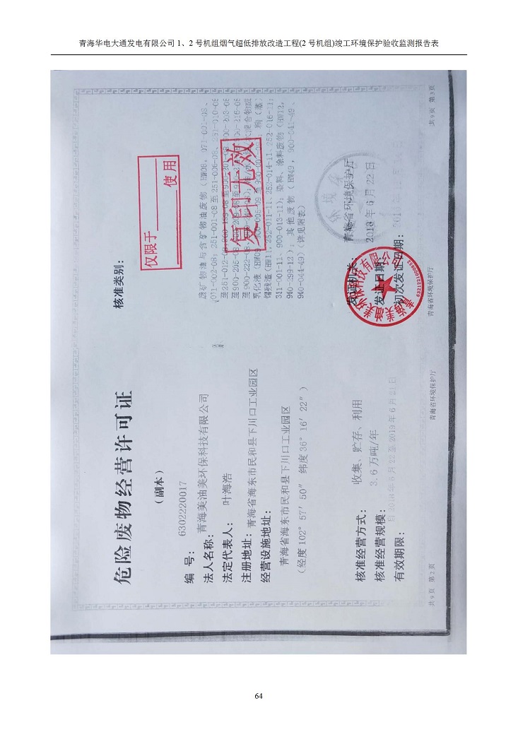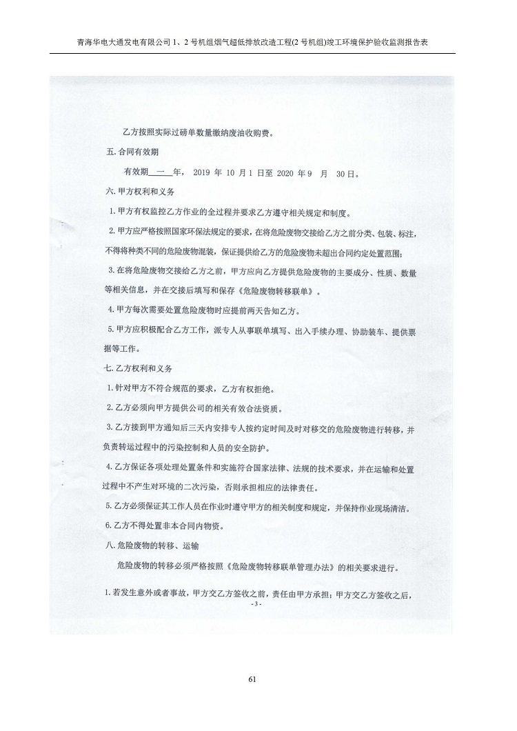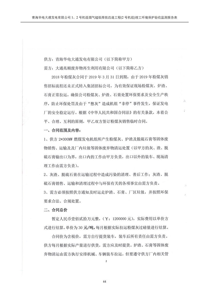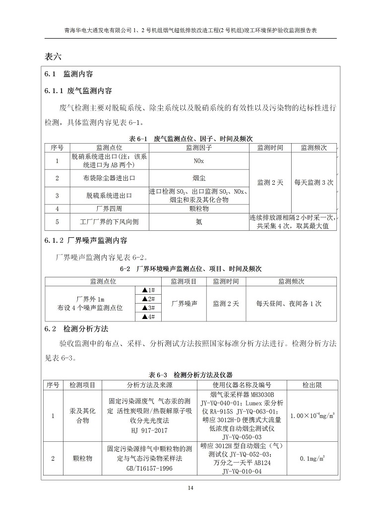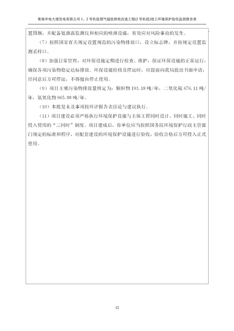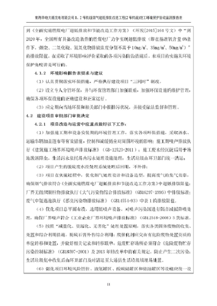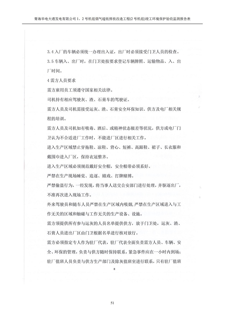 根據(jù)中華人民共和國(guó)國(guó)務(wù)院令第682號(hào)《國(guó)務(wù)院關(guān)于修改〈建設(shè)項(xiàng)目環(huán)境保護(hù)管理?xiàng)l例〉的決定》和《建設(shè)項(xiàng)目竣工環(huán)境保護(hù)驗(yàn)收暫行辦法》(國(guó)務(wù)院令682號(hào)),青海華電大通發(fā)電有限公司1、2號(hào)機(jī)組煙氣超低排放改造工程(2號(hào)機(jī)組) (包括竣工環(huán)境保護(hù)驗(yàn)收監(jiān)測(cè)報(bào)告表和驗(yàn)收意見)公示如下。 一、項(xiàng)目名稱:青海華電大通發(fā)電有限公司1、2號(hào)機(jī)組煙氣超低排放改造工程(2號(hào)機(jī)組) 竣工環(huán)境保護(hù)驗(yàn)收監(jiān)測(cè)報(bào)告表 二、地點(diǎn):青海省西寧市大通縣寧張公路31公里處 三、建設(shè)單位:青海華電大通發(fā)電有限公司 四、建設(shè)內(nèi)容:2號(hào)機(jī)組煙氣超低排放改造,2號(hào)機(jī)組改造內(nèi)容為脫硫系統(tǒng)保留原脫硫裝置作為一級(jí)塔,新建二級(jí)合金托盤塔串聯(lián)吸收塔;對(duì)原“1+2”電袋復(fù)合除塵器的一電場(chǎng)電源進(jìn)行改造,對(duì)布袋除塵器濾袋進(jìn)行更換;對(duì)原脫硝系統(tǒng)選擇性催化還原法(SCR)脫硝工藝加裝備用催化劑,每層催化劑增加聲波吹灰器,優(yōu)化SCR反應(yīng)器入口導(dǎo)流板。 五、聯(lián)系人:馬世敏 六、聯(lián)系電 話:0971-6515411 七、公示時(shí)間:二〇二〇年四月二十九日至二〇二〇年五月二十八日 公示期間,對(duì)上述公示內(nèi)容如有異議,請(qǐng)以書面形式反饋,個(gè)人須署真實(shí)姓名,單位須加蓋公章。