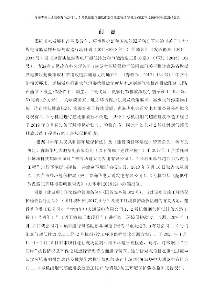 青海華電大通發(fā)電有限公司1、2號(hào)機(jī)組煙氣超低排放改造工程(2號(hào)機(jī)組) 竣工環(huán)境保護(hù)驗(yàn)收監(jiān)測(cè)報(bào)告表公示發(fā)布日期:(2020-4-29) 點(diǎn)擊次數(shù):2635 |