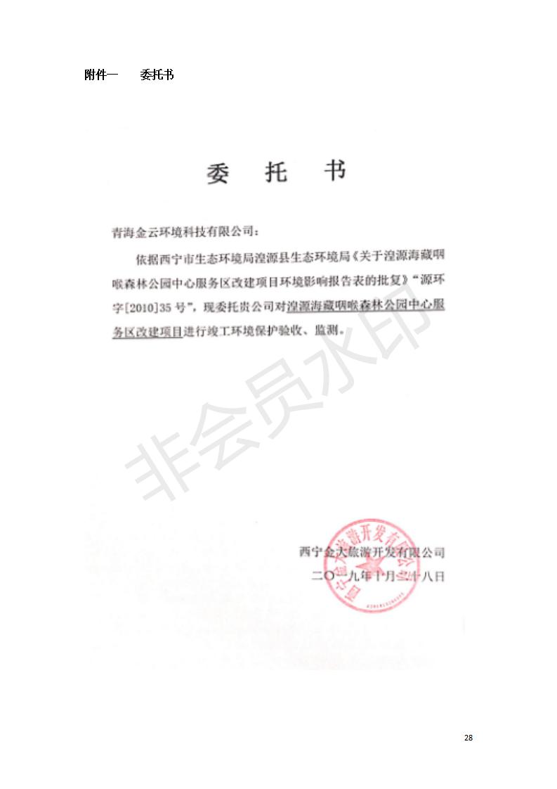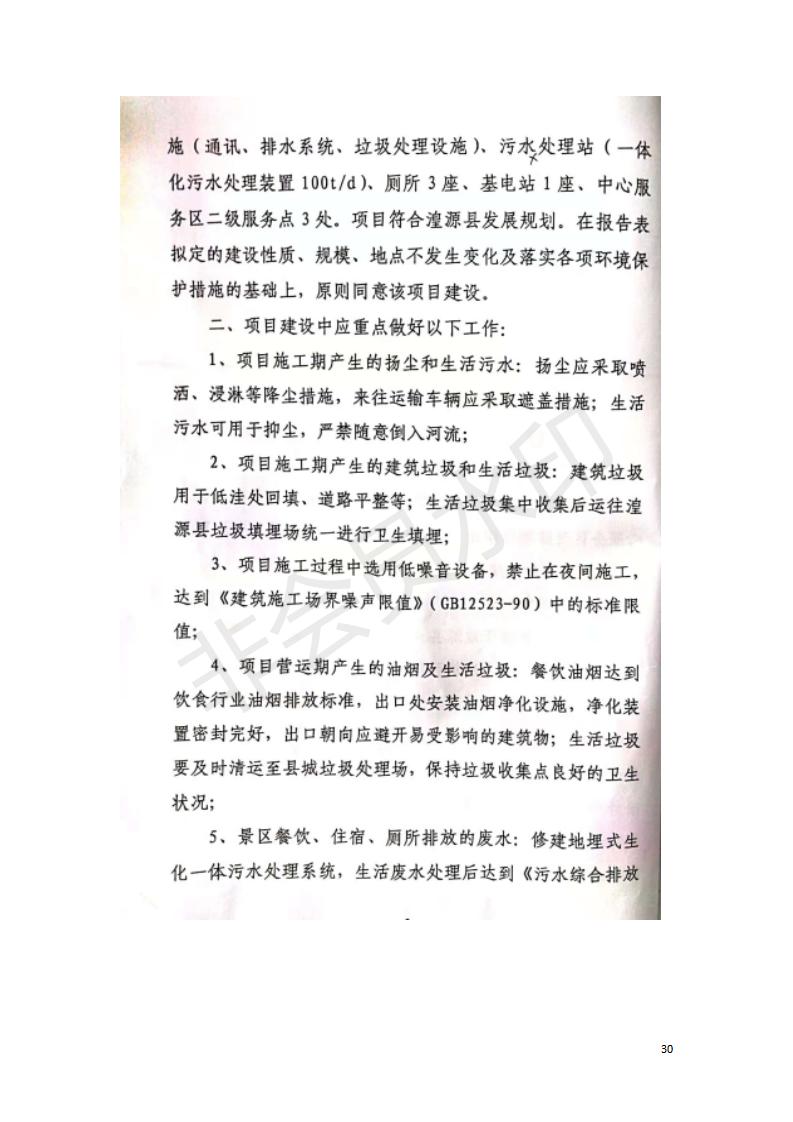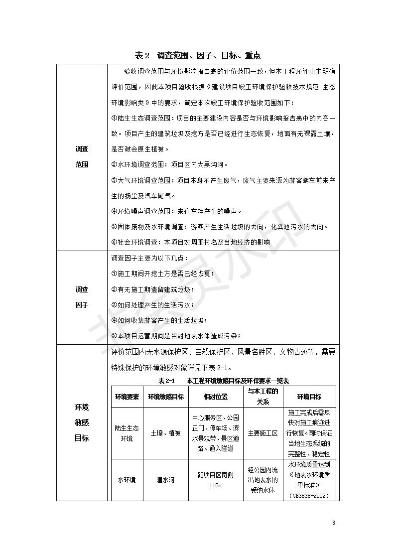 根據(jù)中華人民共和國國務院令第682號《國務院關于修改〈建設項目環(huán)境保護管理條例〉的決定》和《建設項目竣工環(huán)境保護驗收暫行辦法》(國務院令682號),湟源海藏咽喉森林公園中心服務區(qū)改建項目(階段性),(包括竣工環(huán)境保護驗收調查表和驗收意見)公示如下。 一、項目名稱:湟源海藏咽喉森林公園中心服務區(qū)改建項目(階段性) 竣工環(huán)境保護驗收調查表 二、地點:青海省湟源縣東峽鄉(xiāng)大黑溝 三、建設單位:西寧金大旅游開發(fā)有限公司 四、建設內容:本次階段性驗收以自然景觀為主,建設內容為濱水景觀帶、觀景臺、景區(qū)道路及基礎設施。項目范圍從景區(qū)大門至中心位置,全長4800m。 五、聯(lián)系人:張工 六、聯(lián)系電 話:0971-6515411 七、公示時間:二〇二〇年四月二十九日至二〇二〇年五月二十八日 公示期間,對上述公示內容如有異議,請以書面形式反饋,個人須署真實姓名,單位須加蓋公章。