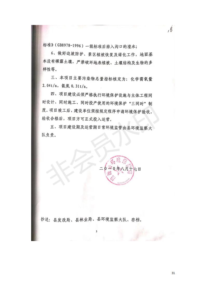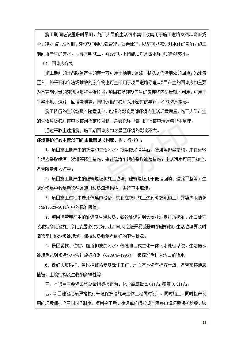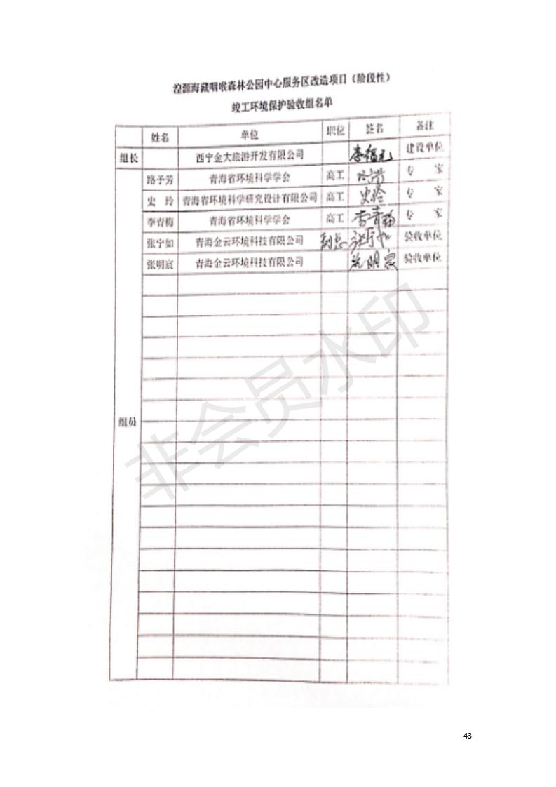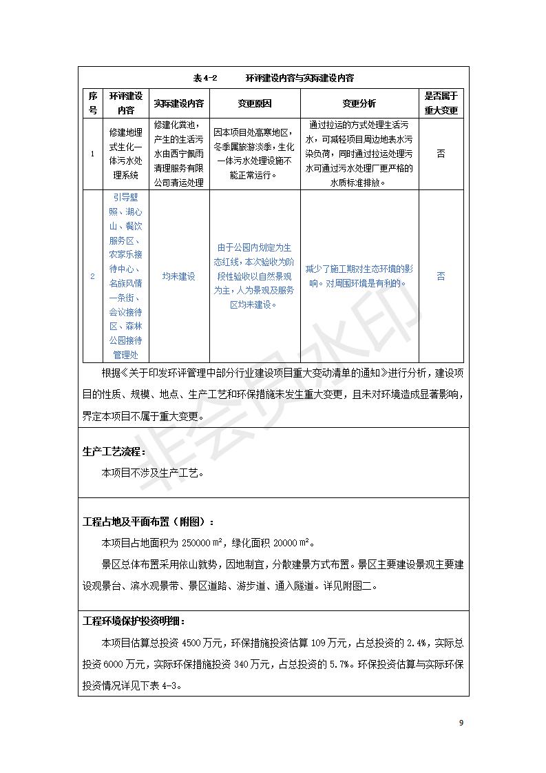 根據(jù)中華人民共和國國務院令第682號《國務院關于修改〈建設項目環(huán)境保護管理條例〉的決定》和《建設項目竣工環(huán)境保護驗收暫行辦法》(國務院令682號),湟源海藏咽喉森林公園中心服務區(qū)改建項目(階段性),(包括竣工環(huán)境保護驗收調查表和驗收意見)公示如下。 一、項目名稱:湟源海藏咽喉森林公園中心服務區(qū)改建項目(階段性) 竣工環(huán)境保護驗收調查表 二、地點:青海省湟源縣東峽鄉(xiāng)大黑溝 三、建設單位:西寧金大旅游開發(fā)有限公司 四、建設內容:本次階段性驗收以自然景觀為主,建設內容為濱水景觀帶、觀景臺、景區(qū)道路及基礎設施。項目范圍從景區(qū)大門至中心位置,全長4800m。 五、聯(lián)系人:張工 六、聯(lián)系電 話:0971-6515411 七、公示時間:二〇二〇年四月二十九日至二〇二〇年五月二十八日 公示期間,對上述公示內容如有異議,請以書面形式反饋,個人須署真實姓名,單位須加蓋公章。
